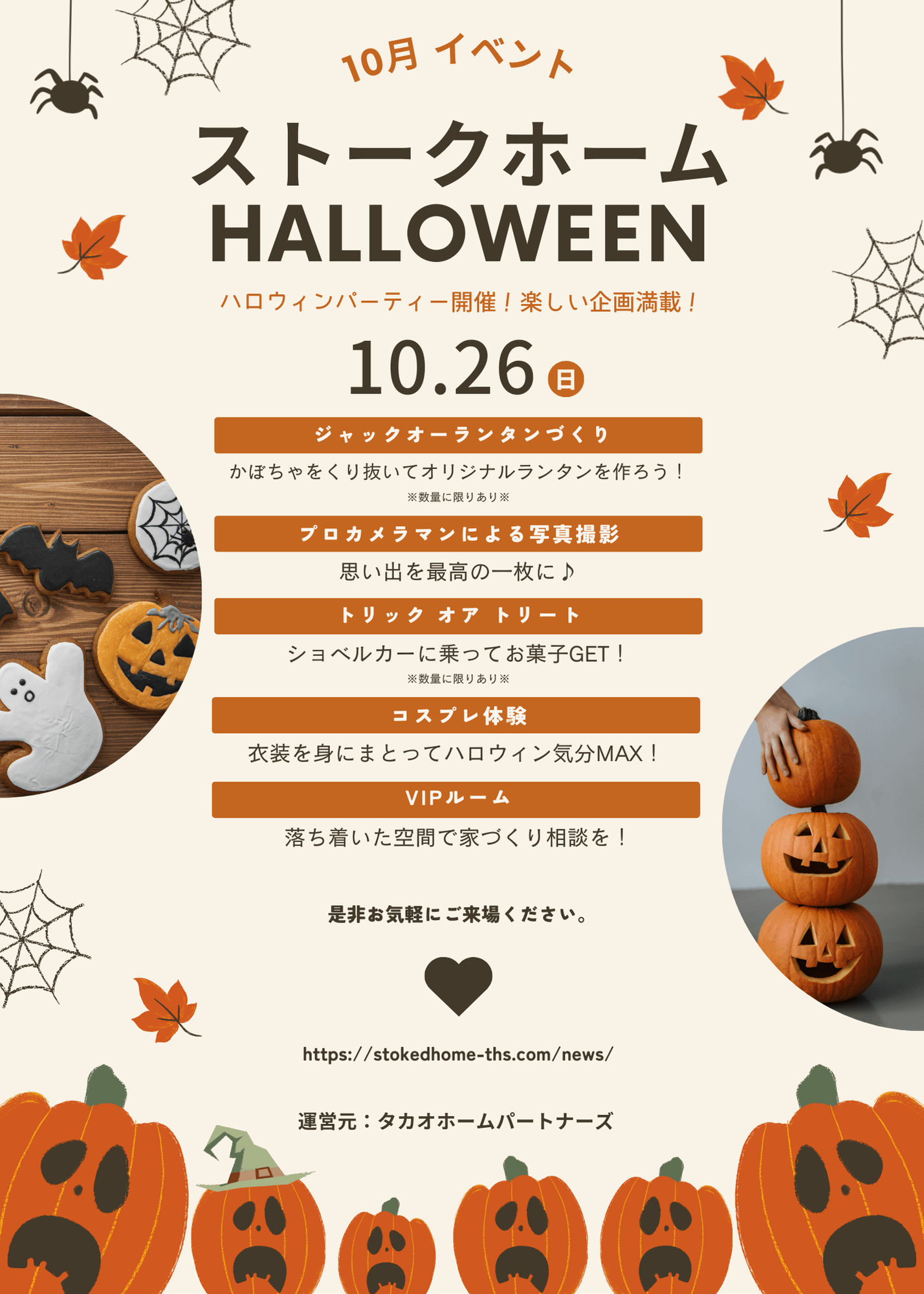 ジャックオーランタンづくり、トリックオアトリートのイベントは数量に限りがございます。