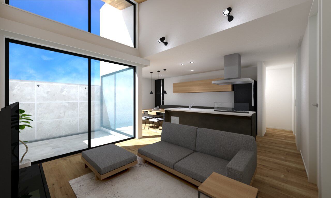 ◇ LDKに面した中庭が空間をより広く感じさせ、明るくゆとりのある仕上がりに!